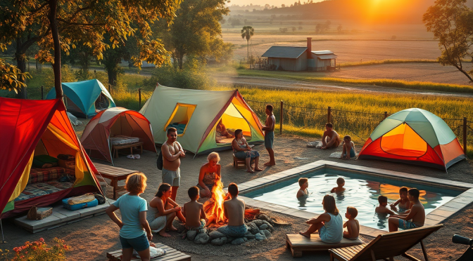 Pra você entender, não eram só amigos, mas também família. Lembro de ter ido avô, tios, primos e amigos dos meus pais. Em realidade, fomos em quatro carros e a ideia era dormirmos em barraca, cada família havia levado a sua. Além das barracas, um barracão, de dois cômodos, também pode ser usado. Em um, fizemos uma área grande para jogarmos os colchões e em outro era a cozinha, onde fazíamos o almoço e a janta. A área para armarmos as barracas e as mesas era grande também. O chuveiro ficava um pouco afastado e em frente onde pousamos, havia um rio, onde podíamos nos esconder na areia (era uma mini-prainha) ou mergulharmos no rio.