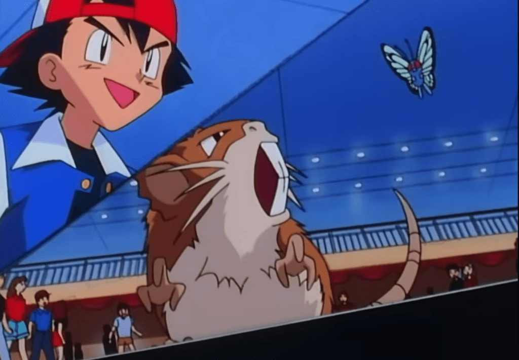 Como a Butterfree ganhou a batalha, o cara pede pro Ash trocar sua Butterfree com o Raticate dele, numa conversinha idiota de que amizade isso, amizade aquilo.