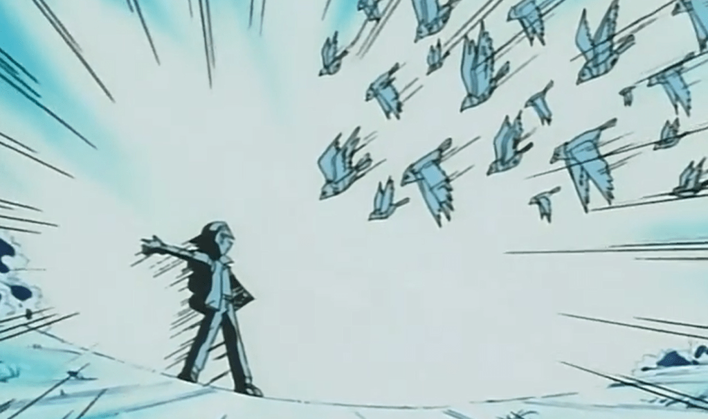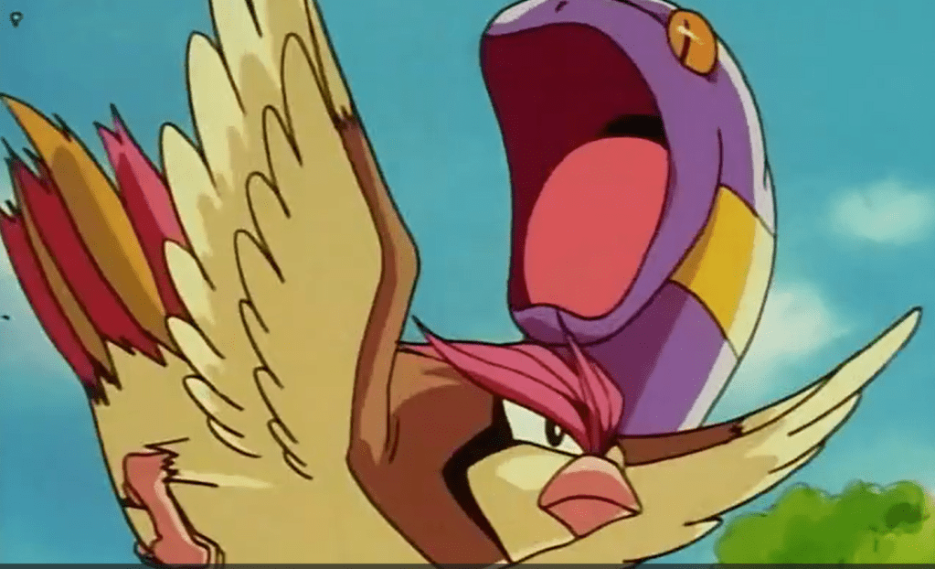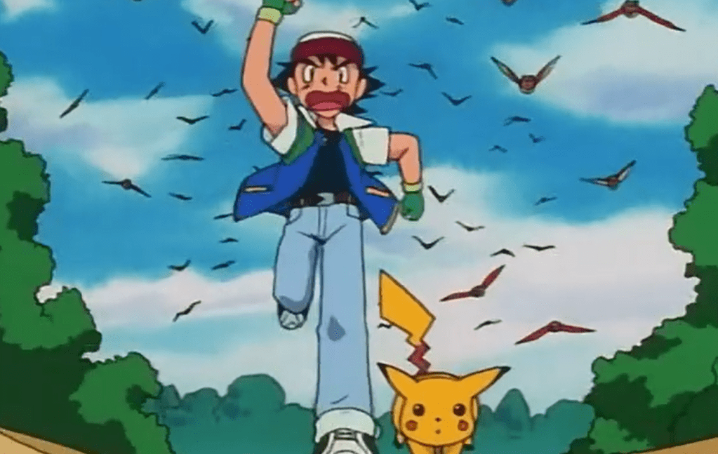 Ash sofre um acidente, derrubando Pikachu e aí os Spearows vão pra cima dele. Ash tenta impedir, colocando-se à frente, mas Pikachu entende o poder da amizade e eletrocuta todo mundo. O episódio termina com Ash avistando um pássaro misterioso no céu.