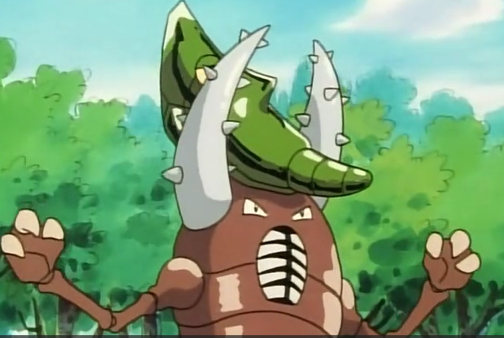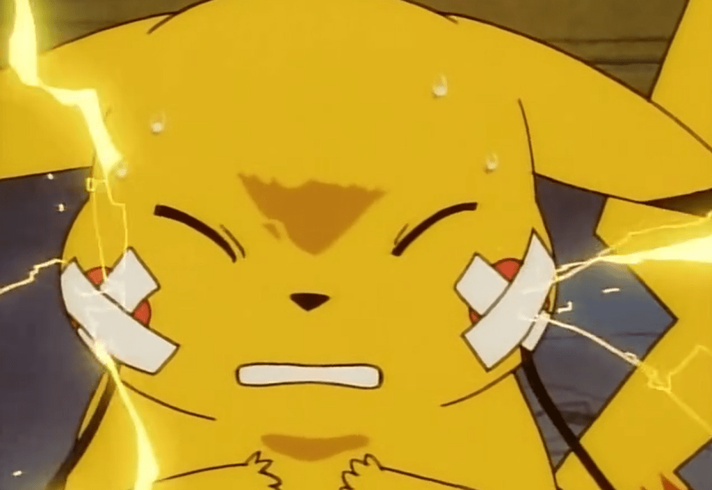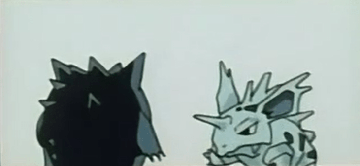 E aí ele manda Pikachu que, por alguma razão, consegue eletrocutar um pokémon do tipo terrestre. Aí temos nosso amigo gigante de pedras surgindo novamente.