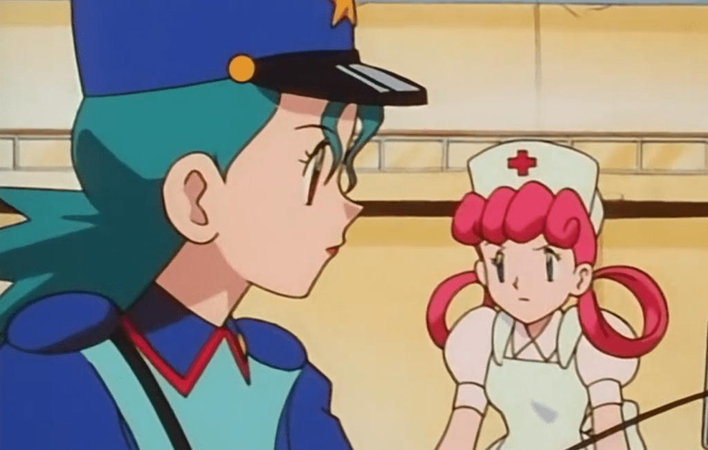 Eles conseguem chegar à cidade de Viridian e aí somos apresentados a duas novas personagens – Jenny, que está em busca de uma galerinha do mal e Joy, a enfermeira do centro pokémon.