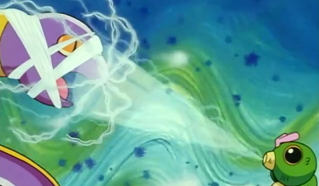Que usa o tiro de estilingue mega power, visto que o efeito dele é só diminuir a velocidade do oponente, mas que o anime fez questão de roubar para o Ash porque ele é o protagonista. Mas, algo suficiente para fazer nossa pequena lagartinha evoluir.