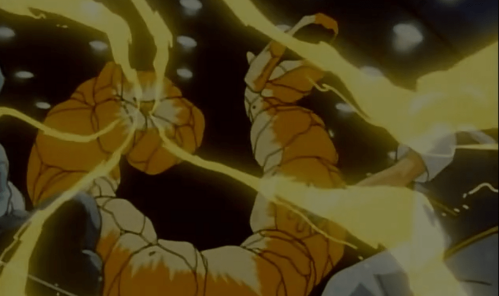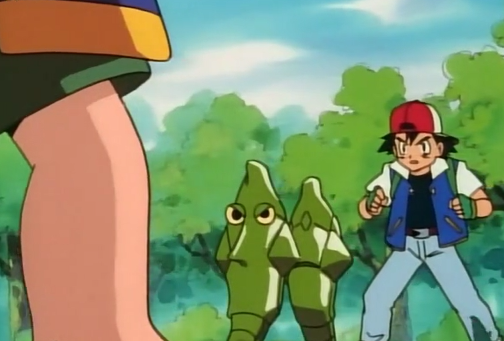 Ash consegue resgatar Metapod e nos brinda com a linda cena da evolução.