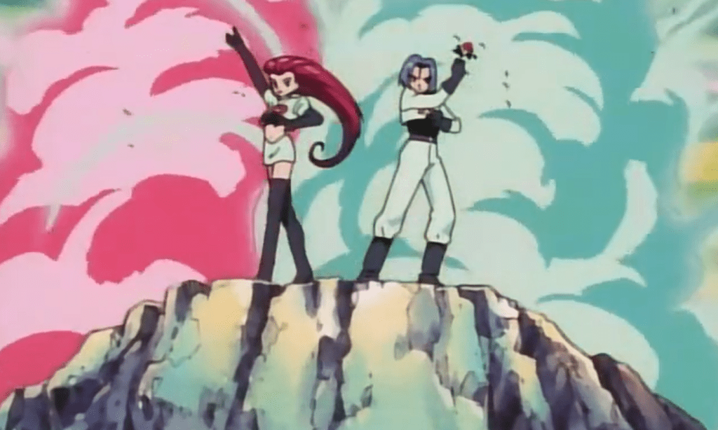 Então, conhecemos a famosa Equipe Rocket, que tenta roubar os pokémons do Centro Pokémon.