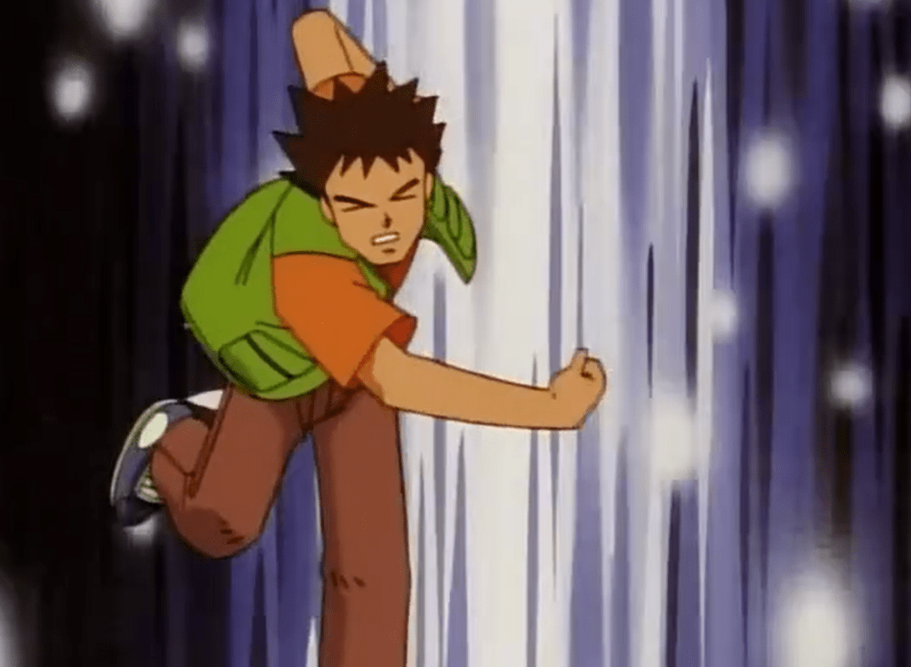 Então Ash chega e já vai desafiando Brock, como se fosse uma ida à padaria.