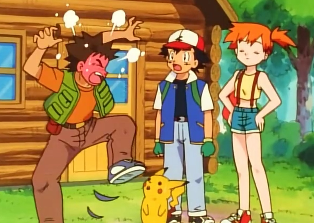 Empolgados com a descoberta de novos pokémon, eles atravessam uma ponte toda lascada (muito confiável) que acaba caindo. O resultado, é uma cena traumatizante para qualquer criança dos anos 90/2000: Brock caindo de uma altura de uns 30 metros direto para o rio.