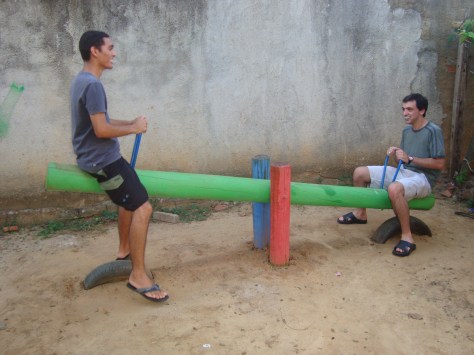É claro! Nem precisa dizer. Subindo numa gangorra dessas, com um pirulito na boca e cheio de crianças, você poderia mesmo imaginar que todos não tínhamos mais nada a fazer e que realmente somos crianças, estou certo?