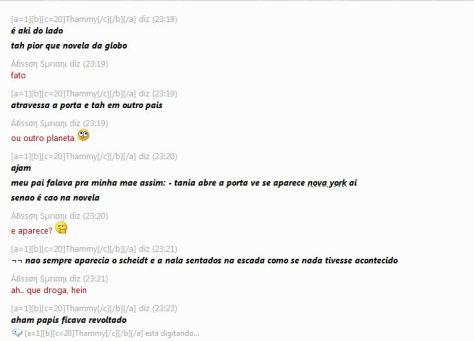 Estava eu, em frente ao PC conversando sobre novelas com uma amiga. Ela falando que nas novelas os país são, sempre, do outro lado da porta e alegou que seu pai sempre tem a seguinte conversa com sua mãe: