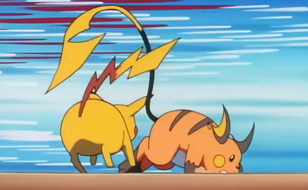 Raichu não aprende nenhum ataque, por isso, sempre que puder, deixe pra evoluí-lo quando Pikachu aprender o último golpe útil, coisa que Surge não fez. Por conta disso, Pikachu ganha na agilidade e Ash garante sua terceira insígnia.